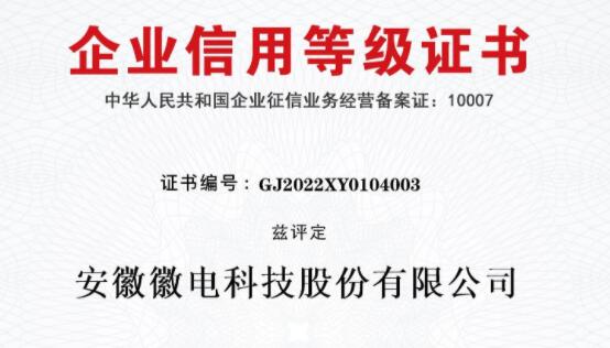 徽電科技榮獲“AAA級企業(yè)信用等級”認(rèn)證